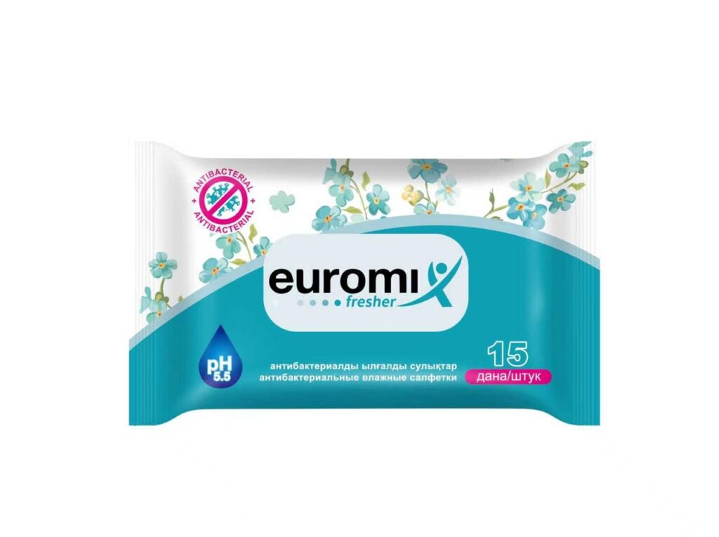 Антибактериальные влажные салфетки Euromix 15 шт В упаковке: 15 штук В коробке: 120 упаковок Подробнее