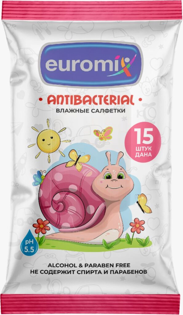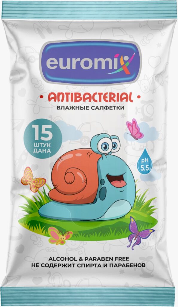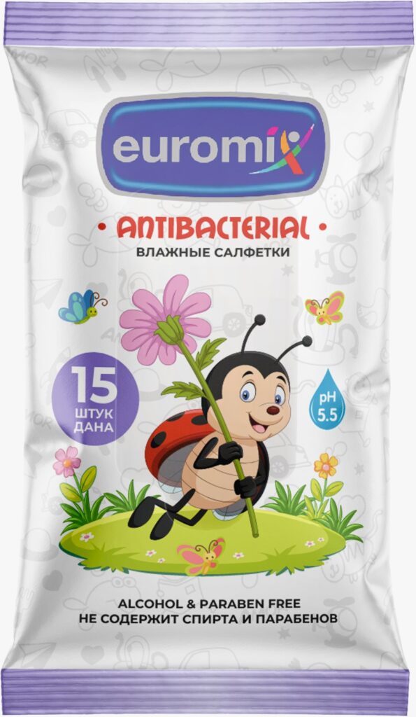 Антибактериальные влажные салфетки Euromix 15 шт В упаковке: 15 штук В коробке: 120 упаковок Подробнее